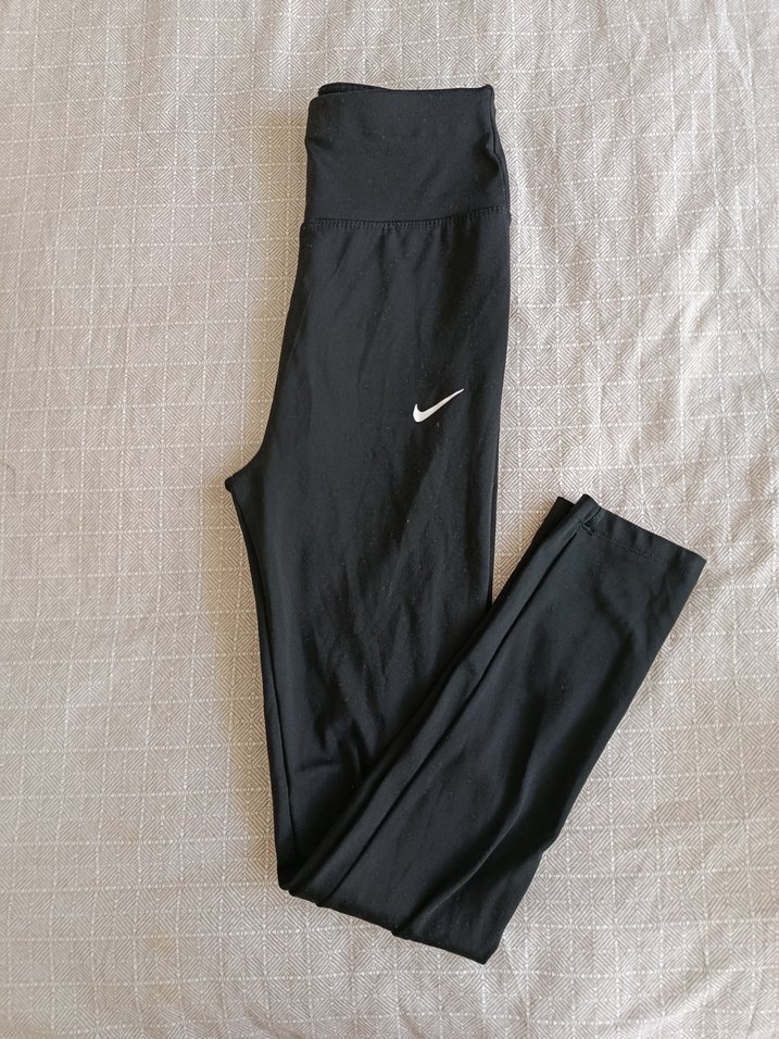 Siyah Nike kadın tayt, elastik bel ve ipeksi dokusuyla spor ve günlük kullanım için uygundur. az kullanıldı.