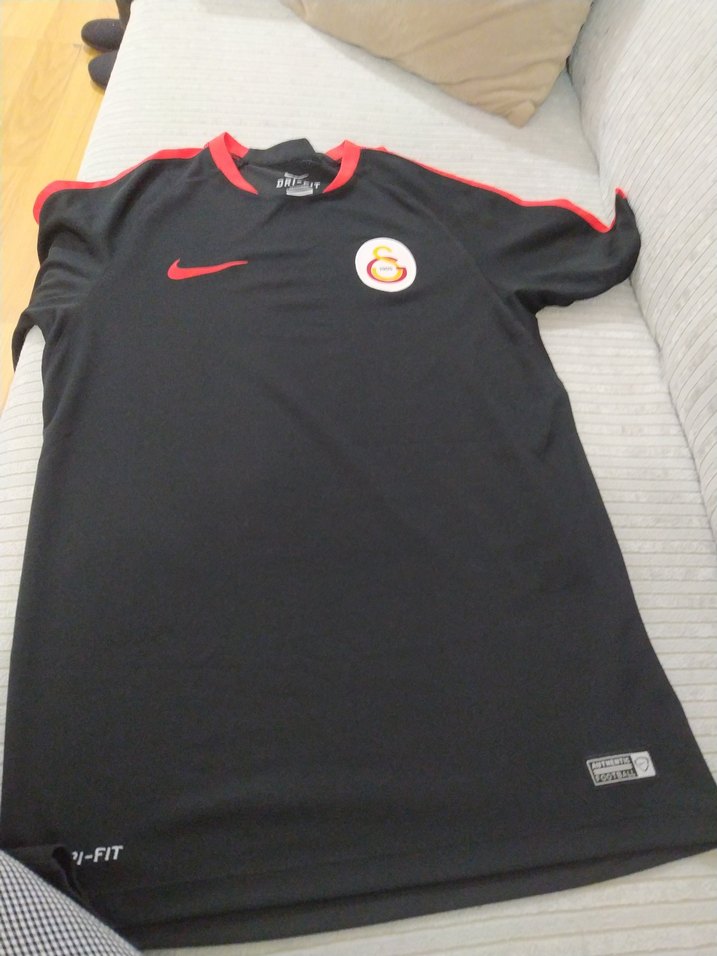 Siyah Nike kısa kollu spor tişört, fitted kesim ve yuvarlak yaka ile. Kırmızı detaylar ve Velcro özelliği bulunur, sportif ve şık görünüme uygundur. ⚽