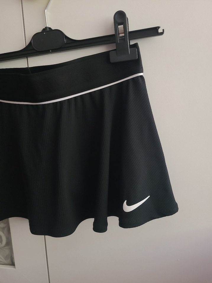Bu siyah Nike mini etek, pilili tasarımı ve vücuda oturan kesimiyle, yumuşak sentetik kumaştan üretilmiştir. Spor ve sokak giyimi için uygundur.#nike
