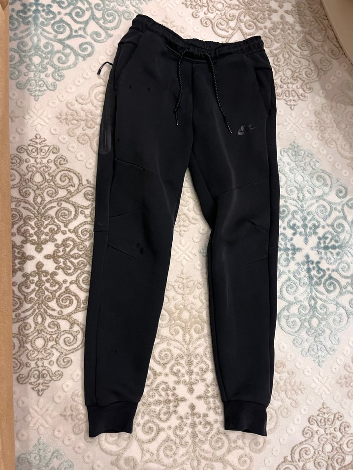 Siyah Nike eşofman altı, elastik bel ve bağcıkla, yan cepler ve bilekte ribanalı. Spor ve günlük kullanım için uygun. ♂️