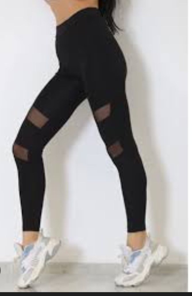 Siyah, elastik bel bantlı, file detaylı ve sentetik kumaştan yapılmış spor tayt. Athleisure ve sokak modasına uygun şık tasarım.