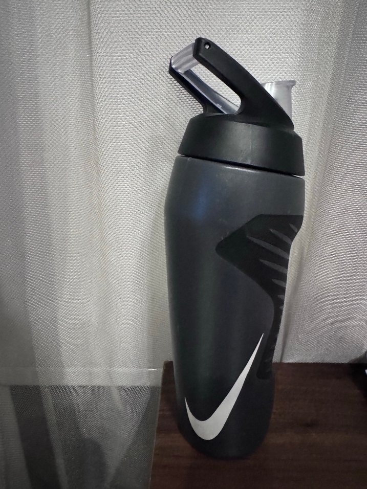 Gri kapaklı siyah Nike suluk , kolay içim için açılır kapaklı ağızlığa sahiptir. Dayanıklı ve kullanışlı tasarım.