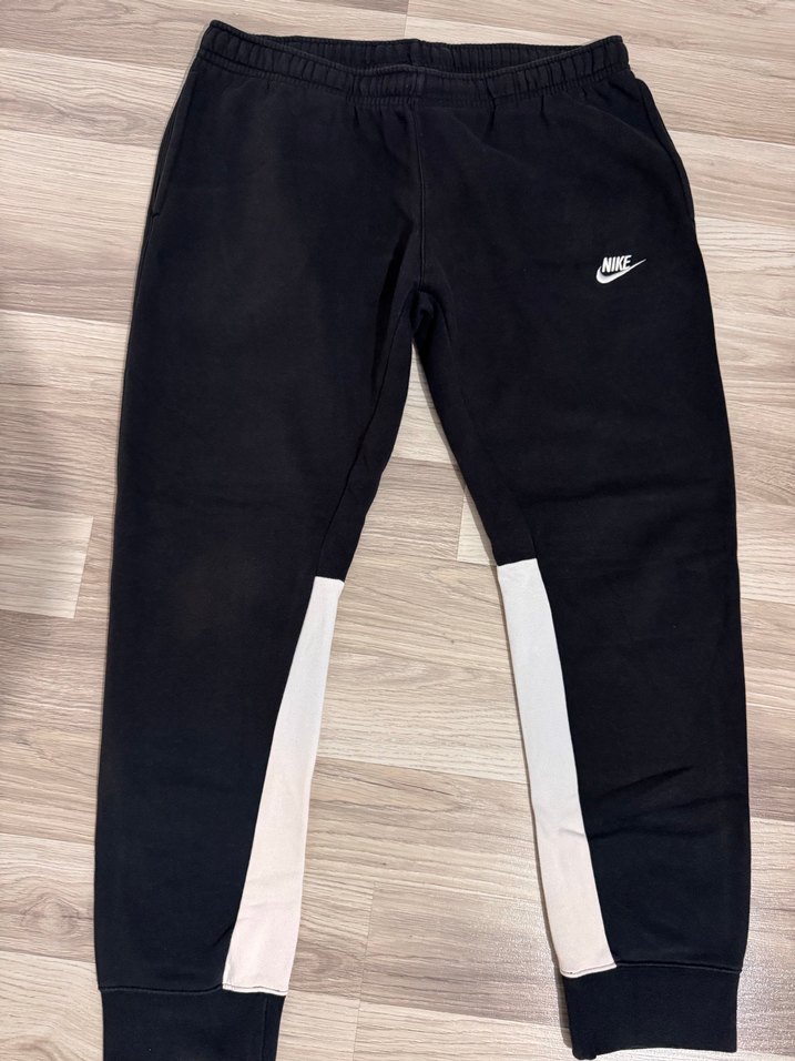 Siyah Nike Unisex eşofman altı, yanlarda beyaz paneller ve yırtmaç detaylı, rahat sentetik kumaştan üretilmiş. Trend sokak stiline uygun.