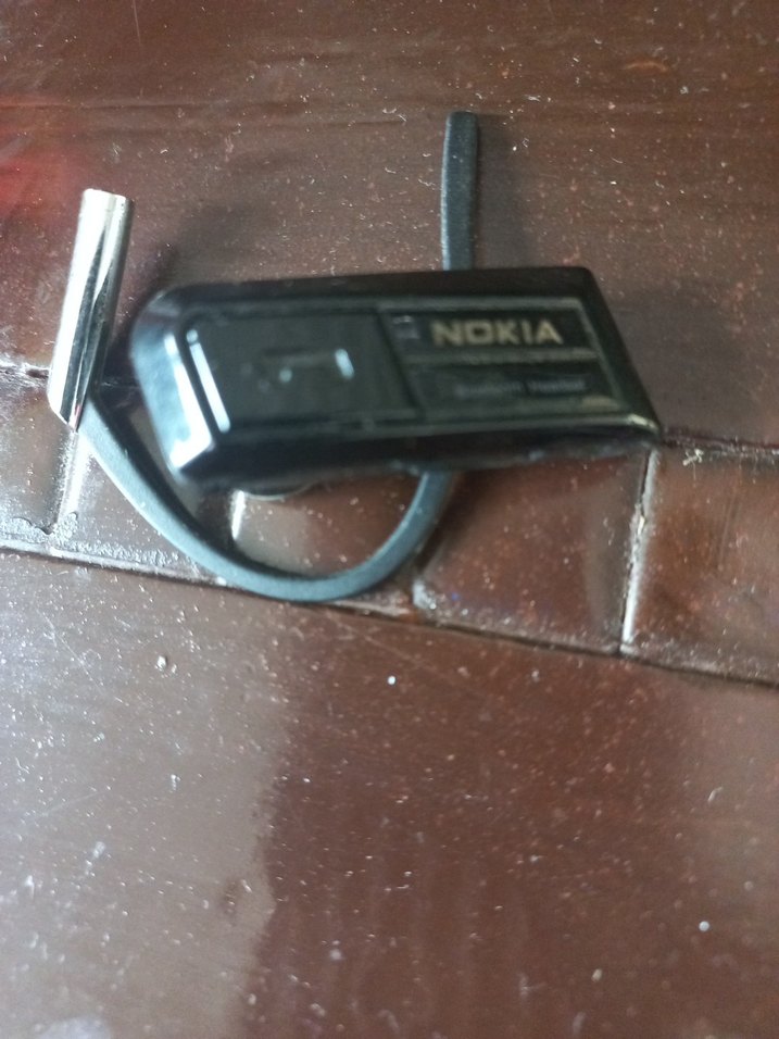 Kompakt tasarımlı siyah Nokia kulaklık, kulak kancasıyla rahat ve sabit kullanım sağlar.