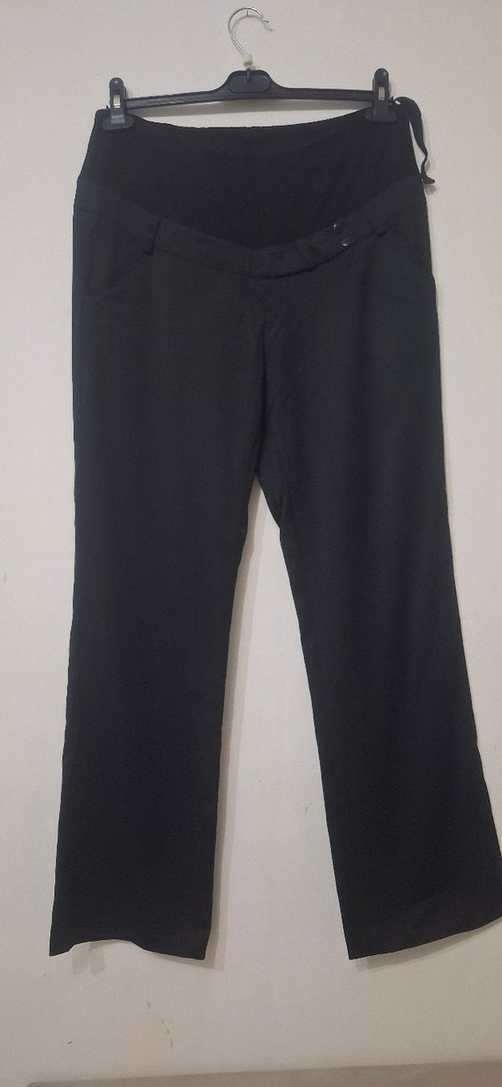 Siyah, normal boy, regular fit hamile pantolonu. Sentetik kumaştan, ofis kullanımı için uygun, zahmetsiz şıklık sunar.