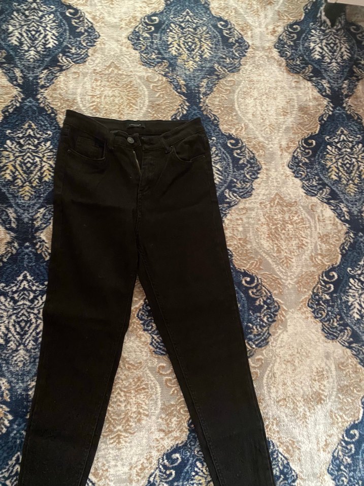Bu siyah kadın denim jean, normal boy ve regular fit olup günlük kullanım için zahmetsiz şıklık sunar. Sokak stili ve gündelik kombinlere uygundur.