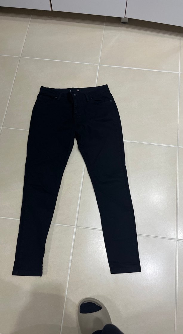 Siyah renkte, normal boy ve regular fit kesime sahip kadın denim pantolon, günlük kullanıma uygun rahat ve şık bir seçenek.