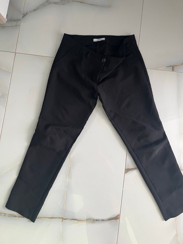 Düz siyah, normal boy kadın pantolon, rahat kesim ve sentetik kumaştan üretilmiştir. Günlük kullanıma uygun, zahmetsiz şıklık sunar.