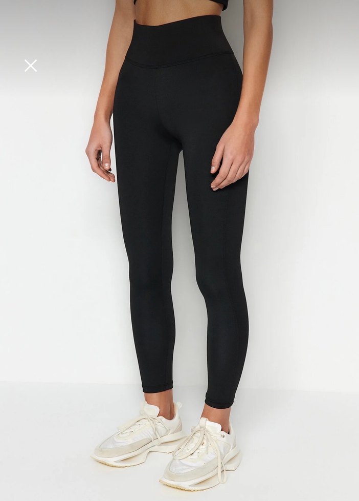 Düz siyah, normal boy ve vücuda oturan bu taytlar, pürüzsüz sentetik kumaştan üretilmiştir. Spor ve sokak tarzı için uygundur.