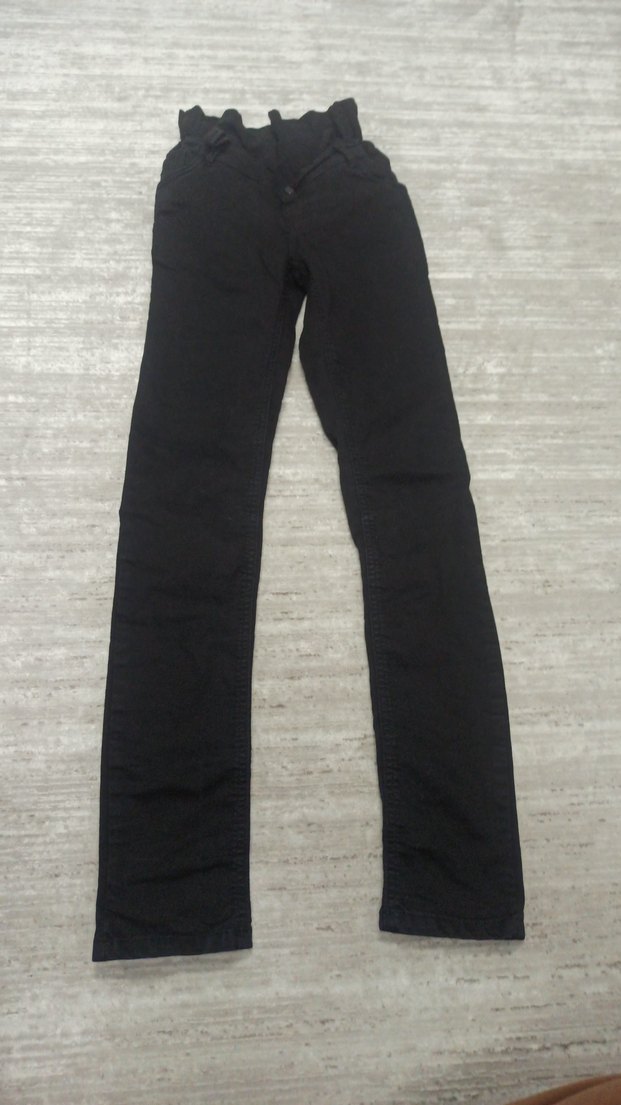 Siyah, elastik bel bantlı, normal kesim hamile denim pantolon. Günlük rahat kullanıma uygun, sade ve desensiz tasarım.