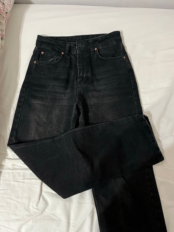 Siyah kot pantolon, normal kesim ve midi boyda, günlük rahat kullanıma uygun şık bir tasarıma sahiptir.