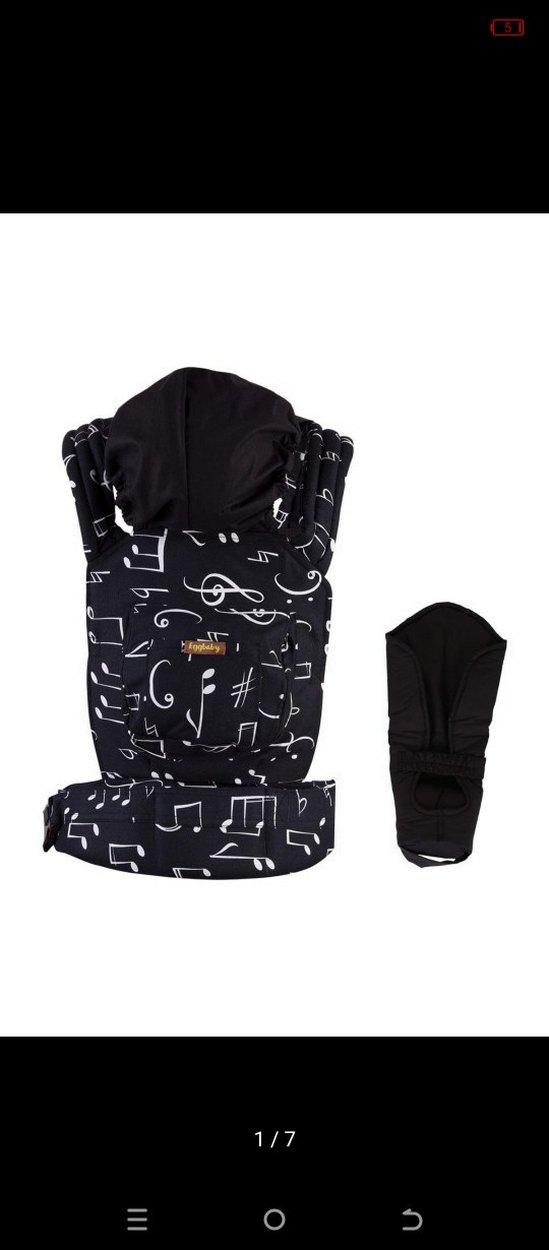 Siyah renkte, nota desenli bebek kangurusu; çıkarılabilir kapüşon ve destekleyici askılar içerir. kullanıma bağlı deformeleri var ama çok belli değil, çok rahat bi ürün yenidoğan dönemi kullandım 3 ay sadece