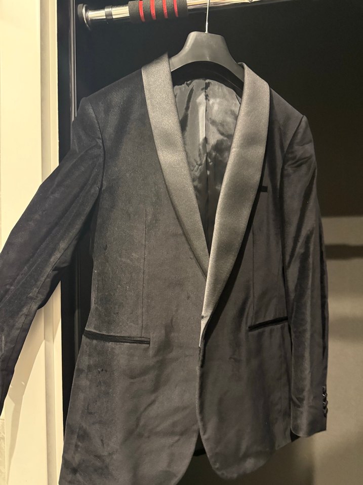 SIFIR HİÇ KULLANILMADI. kadife siyah renk, notch yaka ve düğmeli detaylara sahip erkek ceket. Uzun kollu, normal boy ve regular fit kesimdir. İş ortamı ve streetwear tarzıyla uyumludur. ️