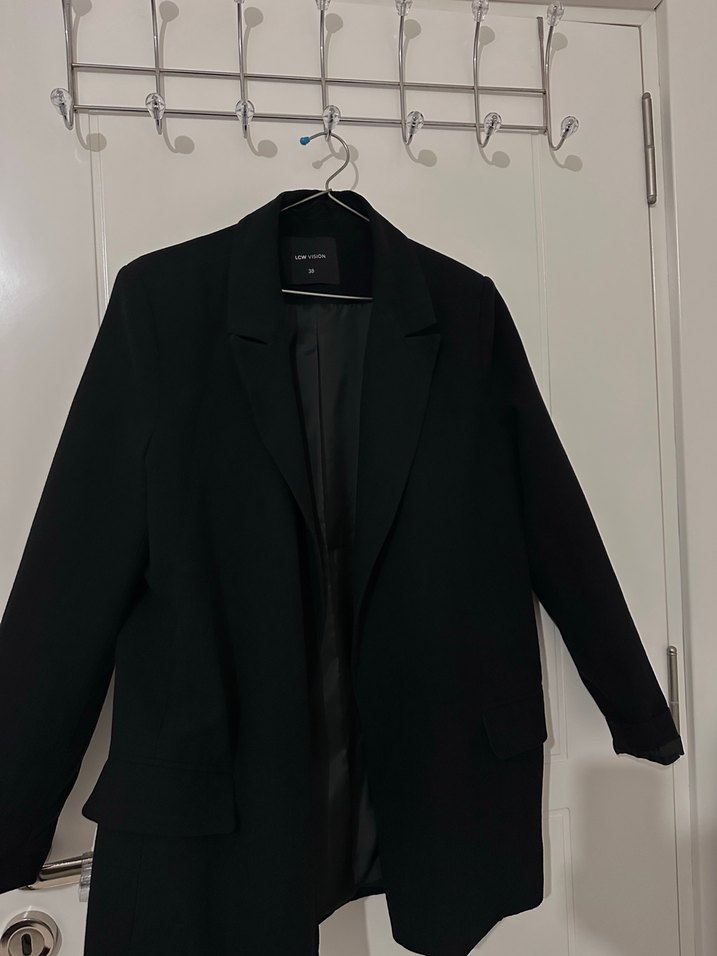 Siyah, notch yaka ve uzun kollu kadın blazer ceket. Normal uzunlukta, düzenli kesim ve desen içermeyen bu parça ofis için şık ve rahat bir tercih. Keren kumaş ve vatkalı üründür. Sadece 1 kez 1-2 saat kullanıldı.