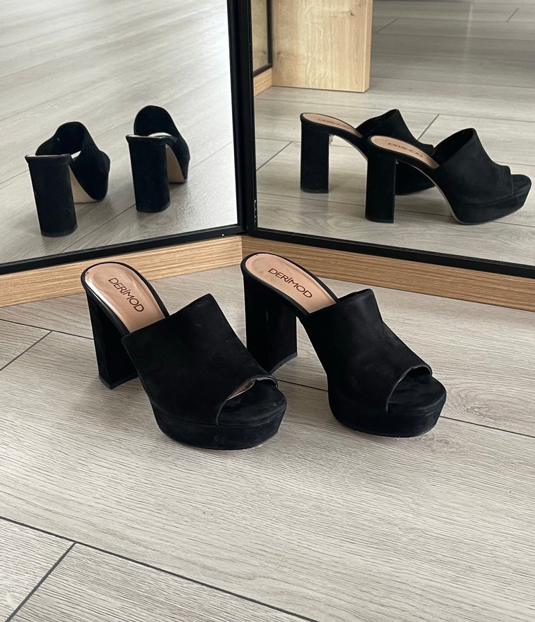 Siyah nubuk platform topuklu terlik. 36 numara. Sorunsuz . Derimod kalitesi