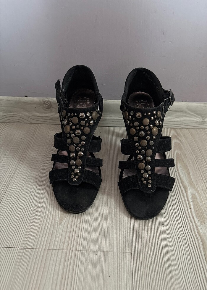 Siyah nubuk topuklu sandalet