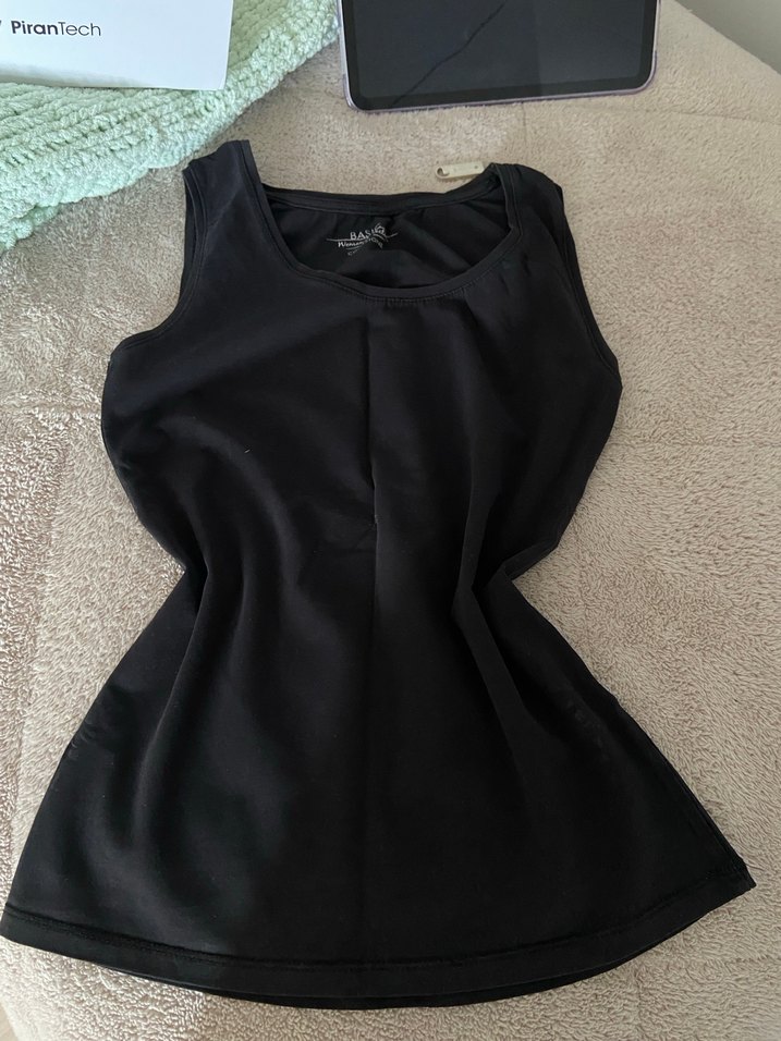 oyaka ve kolsuz, siyah renkli, sentetik kumaştan üretilmiş, vücuda oturan kadın atlet. Minimalist goth tarzıyla günlük kullanıma uygundur.
