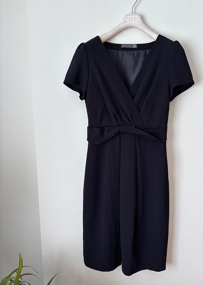 38 Beden, Siyah üzerine çok minik puantiyeli, astarlı elbise. Yaz, kış giyilebilir. Korsajdan gizli fermuarlıdır.