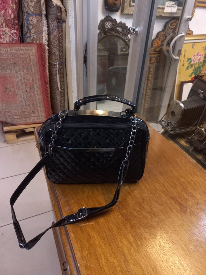 Siyah suni deri, yılan desenli, tokalı ve zincir askılı gotik tarzda kadın çantası. Klasik zarafetle günlük kullanıma uygun. iadesi yok çok temiz ölç 20×28×12