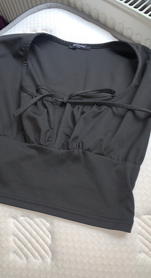 Siyah önden bağlamalı crop