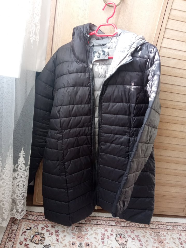 Siyah, vücuda oturan midi uzunlukta kadın ceket. Uzun kollu ve kesik yakalı, yumuşak sentetik kumaştan, fermuarlı ve rahat sokak stili ile günlük kullanıma uygun.