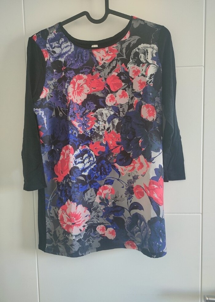 Arkası siyah penye önü çiçek desenli kumaştan bluz En:45 cm Boy:65 cm