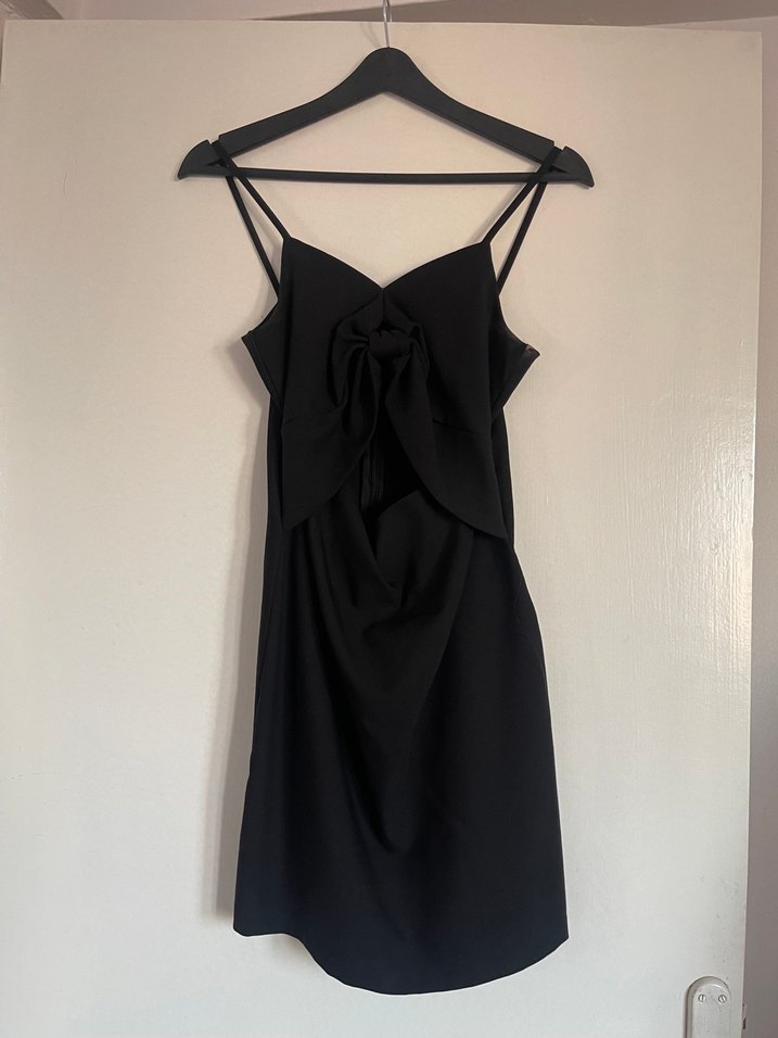 34 beden önü göğüs altından pencereli siyah kısa elbise