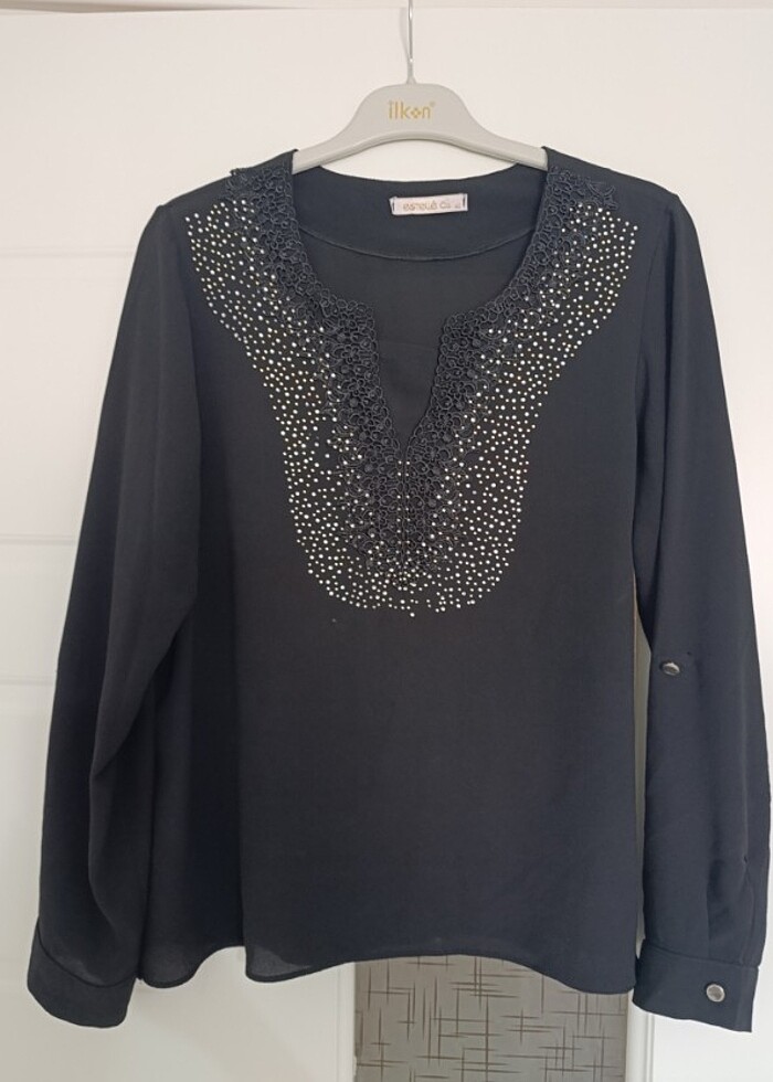 Siyah önü taşlı bluz