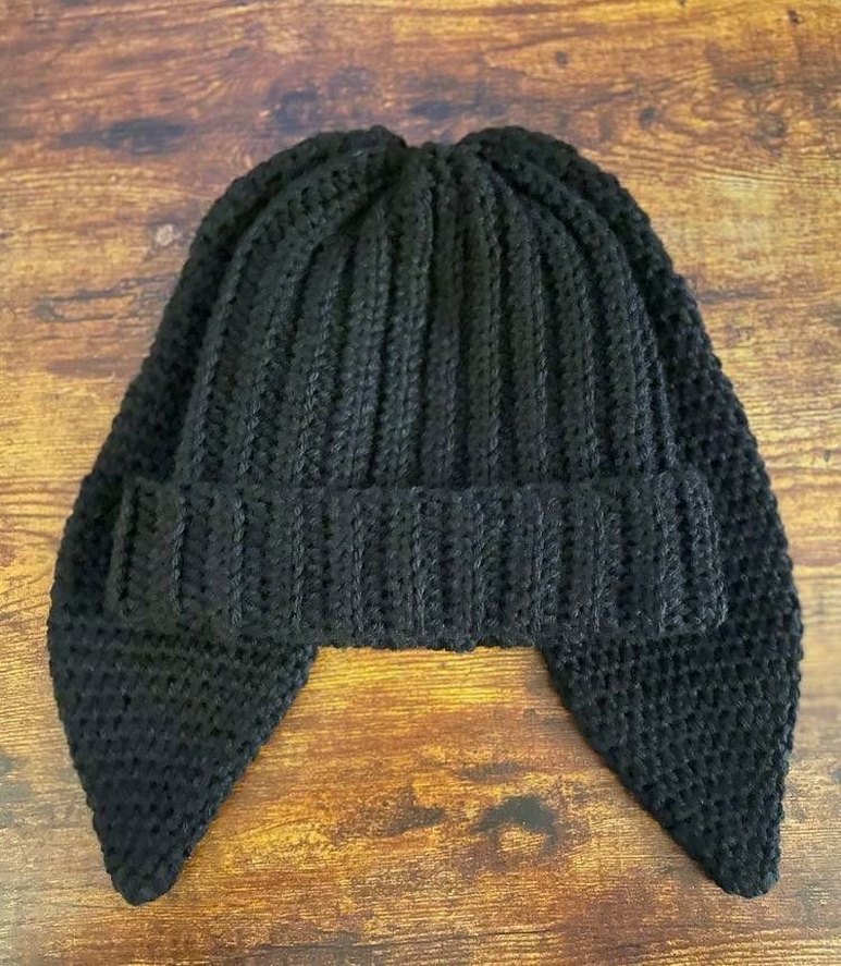 Siyah örgü kadın bere, kulaklıklı ve rahat gotik tarza sahiptir. Düz, temel tasarımı ve sıcak, yumuşak dokusu vardır.