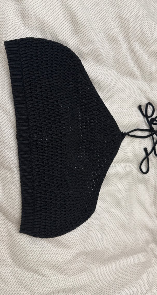 Siyah Örgü Boğazlı Strappy Büstiyer