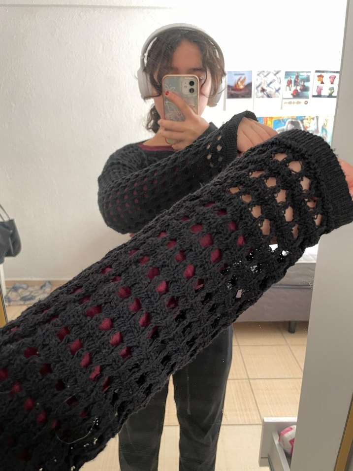 Siyah örgü boğazlı ve uzun kollu, salaş kesime sahip kazak. Desenli örgüsüyle gotik ve avangart tarz sunar, günlük kullanıma uygundur.