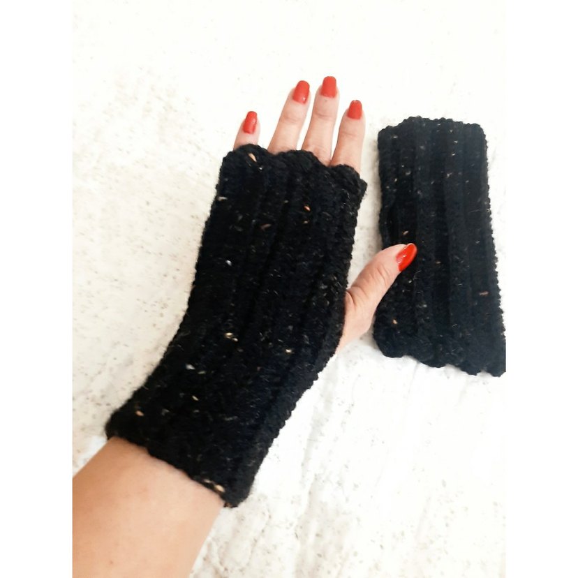 Siyah örgü eldivenler, bohem ve gotik tarzıyla rahat ve parmakları açık tutan tasarıma sahiptir. Retro görünüm için idealdir.