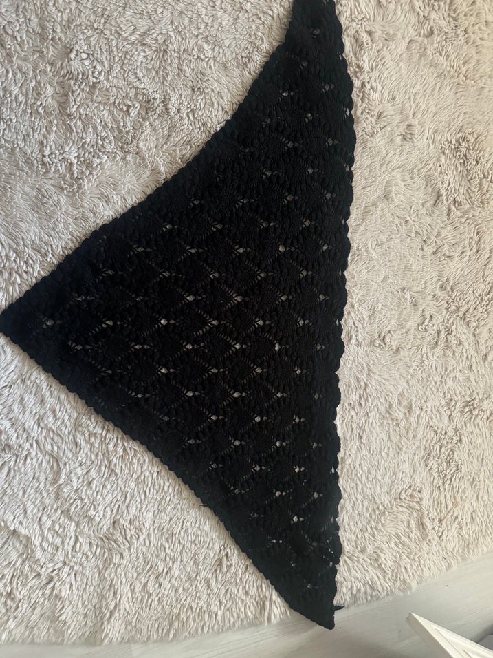 Siyah örgü kadın şal, bohem tarzı ve açık işleme deseniyle rahat ve retro bir görünüm sunar. sorunu yoktur. el örgüsü üçgen model. #örgü #atkı