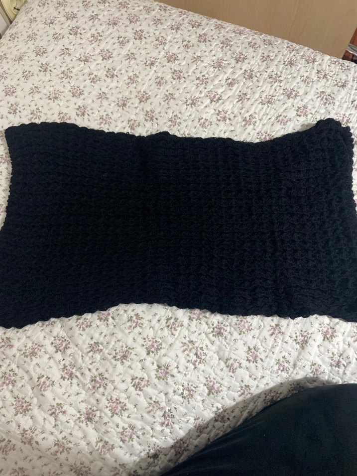 Dokulu desensiz siyah örgü boyunluk, yumuşak ve konforlu.