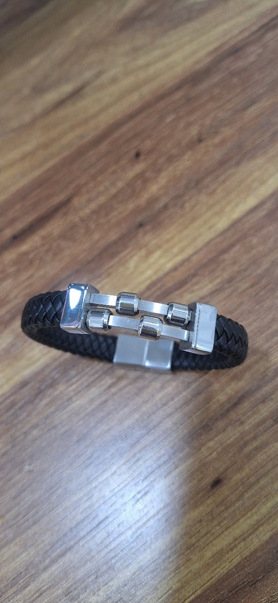 Gümüş renkli tokası olan çelik siyah örgü erkek biker bileklik, minimalist tarzda ve hafif renkli detaylara sahip. hic kullanilmadi erkek gercek çelik ve deridir.sifirdir