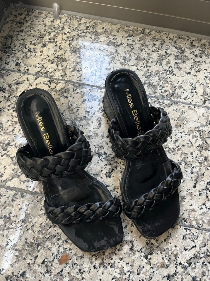 Siyah Örgü Detaylı Topuklu Kadın Terlik