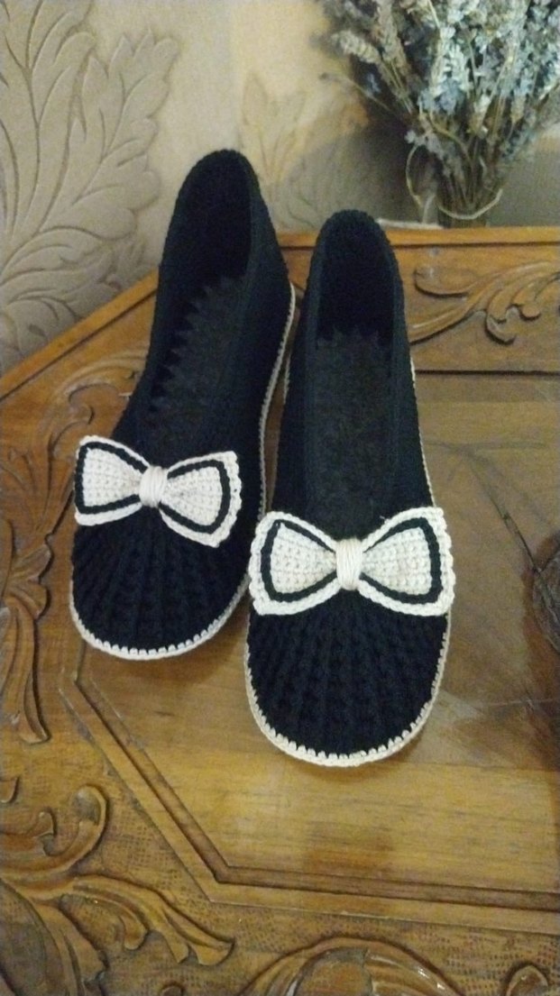 Siyah örgü kumaştan, beyaz fiyonk detaylı, yüksek topuklu, rahat ve klasik tarzda kadın terlik.İstek üzerine yapılacaktır