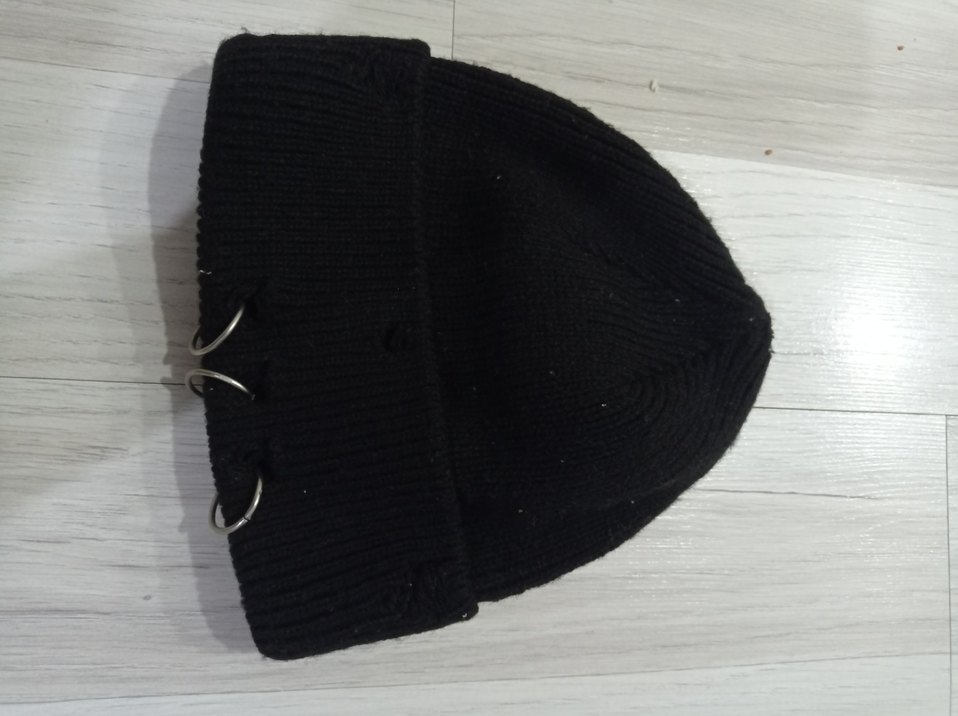 Siyah renkli, örgü kumaştan yapılmış goth tarzı kadın bere. Sade ve temel tasarımıyla koyu renk sevenler için uygun.