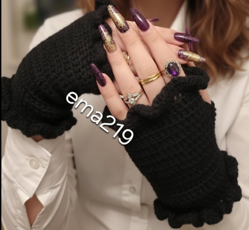 GÖRSEL BANA AİTTİR ✔️ İLAN AÇIYORUM Siyah örgü kumaştan, gotik tarzda, koyu renkli ve trend bir görünüme sahip kadın eldiveni. Avant-garde modayı sevenler için uygun.