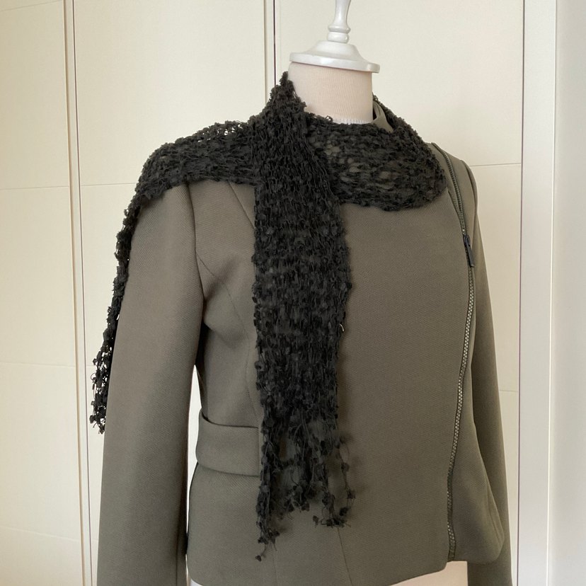 Siyah renkli, açık dokulu örgü kadın atkı, gotik tarzda sıcak ve özgün bir görünüm sunar. Diğer rengi de profilimde