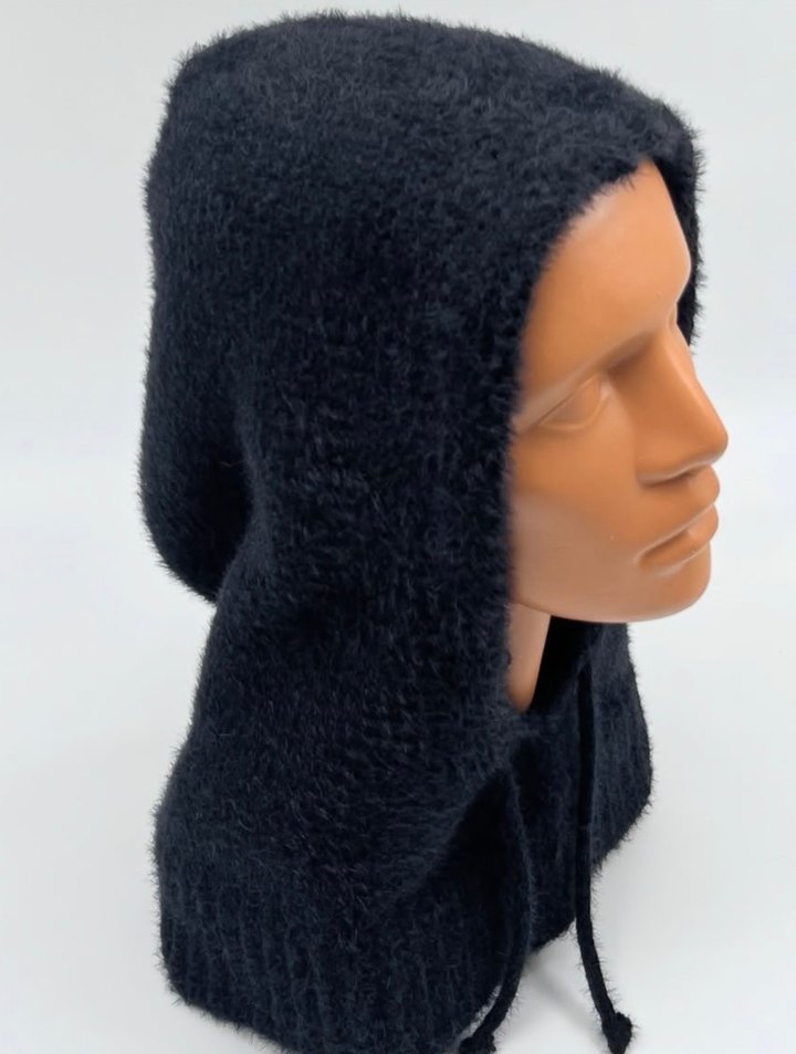 Siyah örgü kadın bere kapüşon, yumuşak ve sıcak fleece astara sahip olup gotik ve avangart tarzı birleştirir. Trendsetterlar için ideal. Sıfır paketli üründür çekim kendime aittir