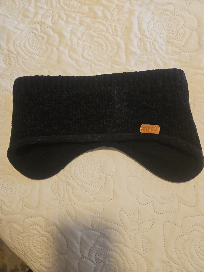 Siyah kadife ve polar çift katman örgü dokulu, yumuşak iç yüzeye sahip alın ve kulak koruyucu.hiç kullanılmadı ..yeniii Rahat kullanım ve hafif biker tarzı detaylar sunar.