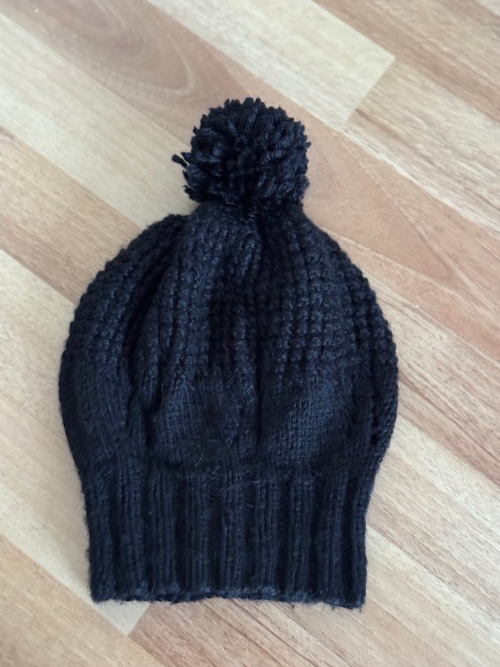 Üstünde ponpon bulunan siyah örgü kadın bere, sade ve temel bir tarz için uygun, koyu goth havasında rahat bir tasarıma sahiptir.