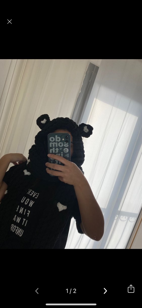 Siyah örgü kadın bere, koyu renkli yumuşak ve sıcak kumaştan, gotik stil ve rock punk havasıyla. Küçük dekoratif detaylar içerir.