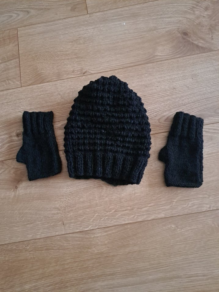 Siyah Örgü Kadın Bere ve Parmaksız Eldiven