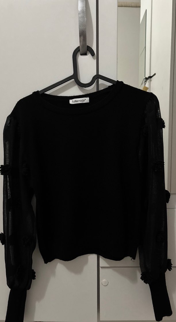 Siyah Örgü Kadın Bluz, Uzun Kollu, Salaş