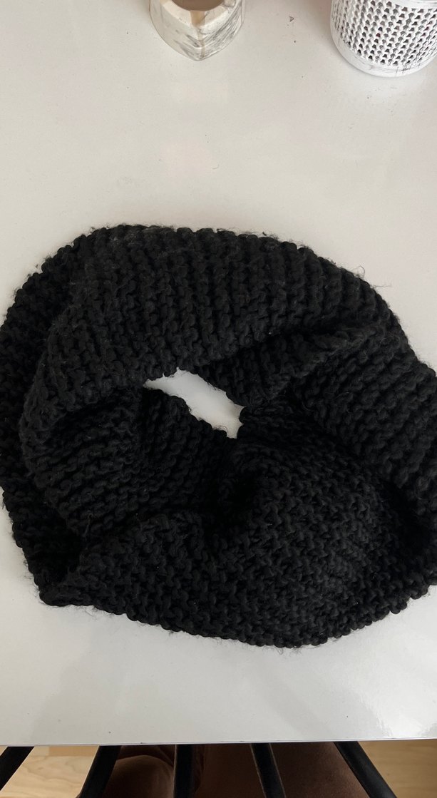 Siyah örgü kadın boyunluk rahat ve sade tasarıma sahip, yumuşak örme kumaştan yapılmıştır.