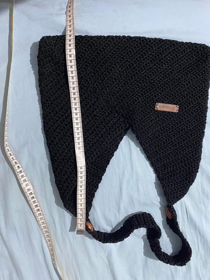 Siyah örgü kadın çanta, yumuşak örgü kumaştan yapılmış, günlük kullanıma uygun sade ve rahat bir tarza sahiptir. El emeği