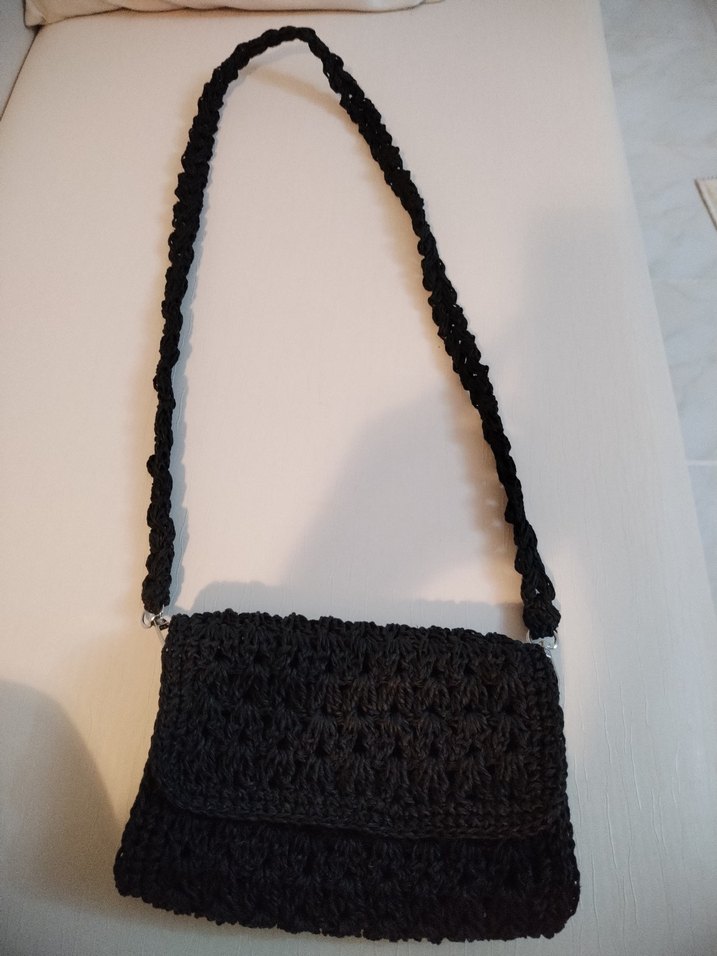 Siyah örgü kadın çanta, minimalist goth tarzıyla dikkat çekiyor. Desensiz yapısıyla günlük kullanıma uygun, bohem ve retro havası taşıyor.