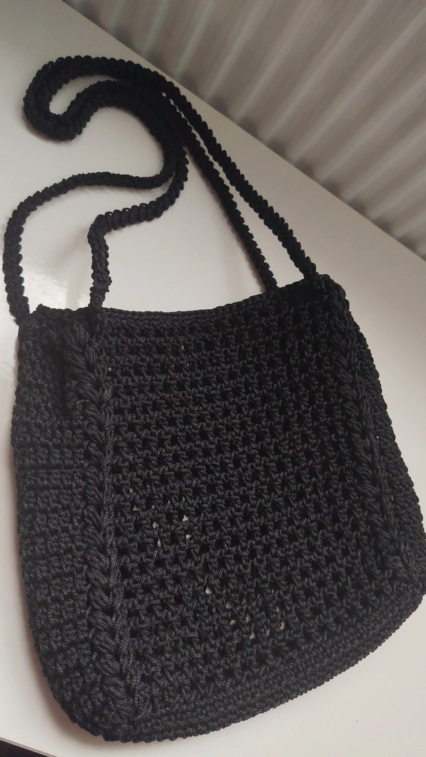 Siyah örgü kumaştan yapılmış, desen içermeyen, gotik tarzda minimalist kadın çantası. Günlük kullanıma uygun, sade ve temel tasarımda, zahmetsiz şıklık sunar.